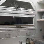 El elkedel, et køleskab og glas er også til rådighed for gæsterne.